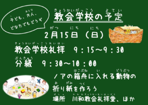 2月の教会学校は15日(日)9:15から